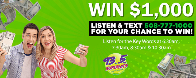It’s BACK The Fall Cash Giveaway on SuperHits 93.5! Be listening each weekday at 6:30am, 7:30am, 8:30am and 10:30am for that hours “Key Word” Monday September 22nd – Friday October 31st, then text that key word to 508-777-1000 for your chance at winning $1,000 or enter the key word below! 1 lucky winner will win $1,000 each day! If you are a winner we will call to notify you. Brought to you by Crouse Land Improvement in Franklin Grove, Opportunity House in Sycamore, Headon’s Fine Meat in Creston, Maintain Your Smile Dentistry in Rochelle, King Black Top in Byron & The Red Brick Inn Bar & Grill in Kirkland. BE listening, the more key words you enter the better chance you have at winning the money! With SuperHits 93.5!