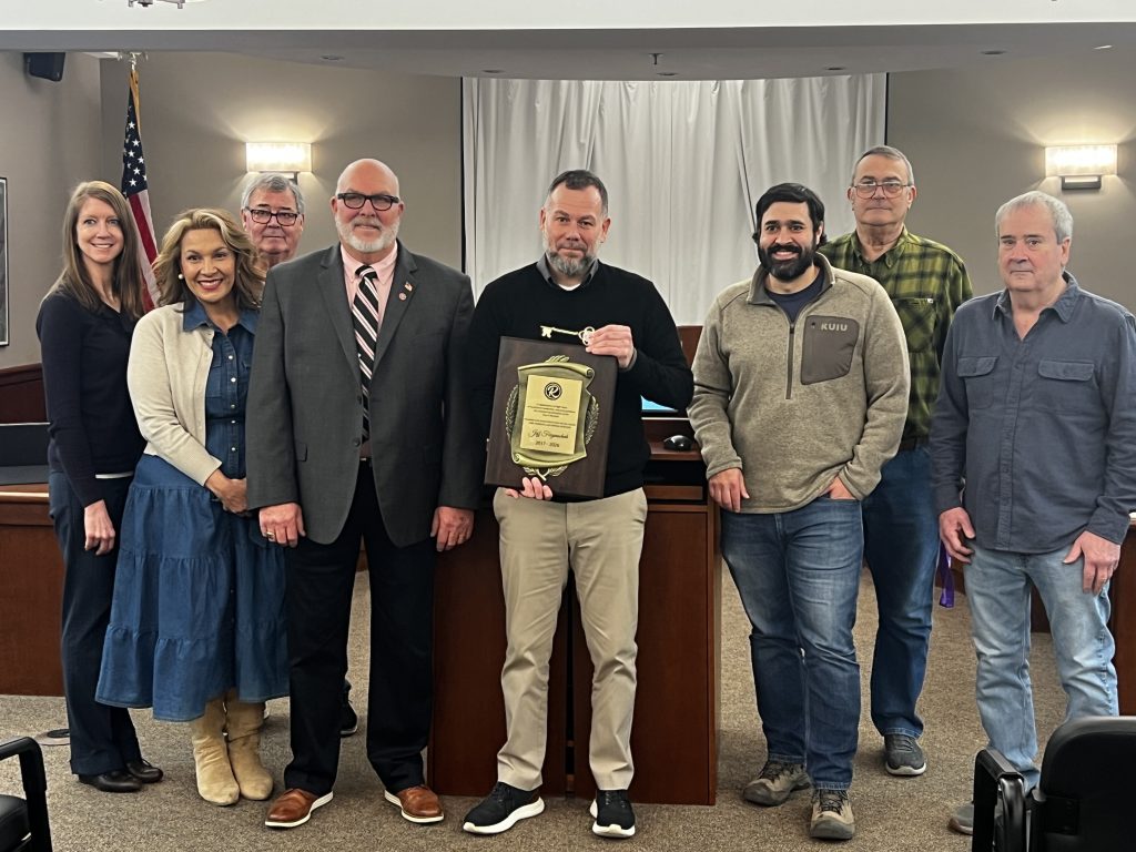 ROCHELLE – The Rochelle City Council and Mayor John Bearrows honored outgoing City Manager Jeff Fiegenschuh at the council meeting Monday night. He was presented with a plaque honoring his service to the community for eight years, plus received a key to the city. Fiegenschuh will be taking over the duties as the Washington, Illinois city administrator January 19th. An open house will be held Wednesday from 1 p.m. to 3 p.m. in the Rochelle Council Chambers at Rochelle City Hall located at 420 N. 6th St. All residents and community members are invited to attend the gathering to recognize his years of service to the city.